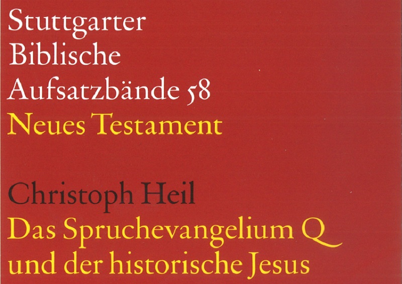 Im Juli 2014 ist ein Aufsatzband von Prof. Dr. Christoph Heil unter dem Titel "Das Spruchevangelium Q und der historische Jesus" im Verlag des Katholischen Bibelwerks Stuttgart erschienen. Die Beiträge des Bandes entstanden im Kontext des International Q Project, das sich der Rekonstruktion und Interpretation des Spruchevangeliums Q widmet. Einleitend werden Fragen der Rekonstruktion und Gattung von Q behandelt. Der Hauptteil befasst sich mit den Transformationen der Jesusüberlieferung in Q (u.a. Nachfolge und Mission, Tora und Schrift sowie Gleichnisse). Abschließend werden Detailaspekte der historischen Rückfrage nach Jesus beleuchtet: Möglichkeiten und Grenzen der historischen Methode sowie der Geburtsort und der Bildungsgrad Jesu.