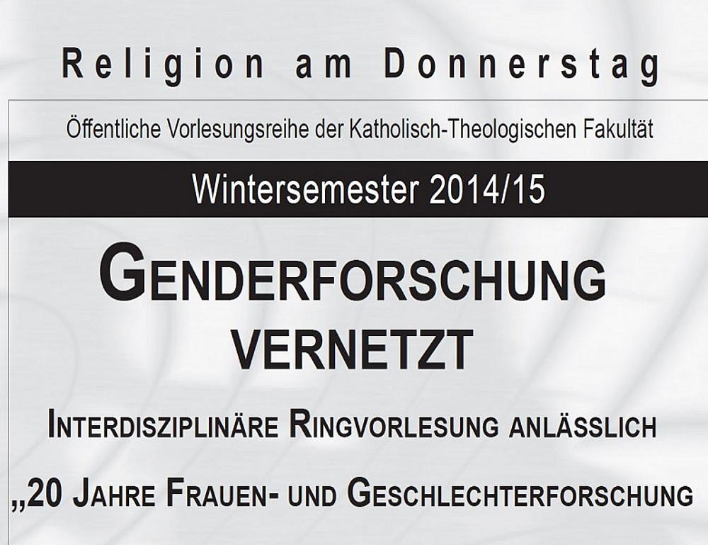 Seit 20 Jahren gibt es an der Katholisch-Theologischen Fakultät (an keiner anderen sonst!) einen Forschungsschwerpunkt „Frauen- und Geschlechterforschung" (http://genderforschung-theologie.uni-graz.at/), der mit Forschungen anderer Fakultäten der Universität Graz von Anfang an gut vernetzt war. Die Lehrveranstaltungsreihe erweist die Anschlussfähigkeit und Relevanz der theologischen Forschung für andere Disziplinen und stellt sie für ein breites Publikum vor. Die Vorlesungen finden jeweils donnerstags um 19.00 Uhr im Hörsaal Regilind und Irmingard von Admont (HS 47.01) im Universitätszentrum Theologie (UZT) in der Heinrichstraße 78, 8010 Graz, Parterre. statt.