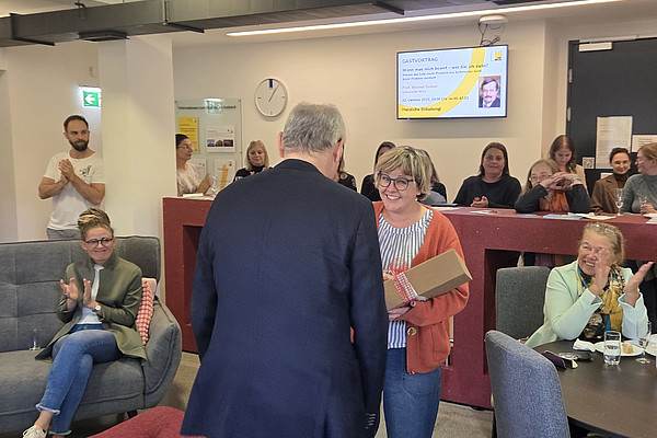 Am 14. Oktober wurde die (Wieder-)Eröffnung feierlich begangen, natürlich bei Speis und Trank. Dabei bot sich auch eine schöne Gelegenheit, Katharina Grubinger für ihre engagierte einjährige Tätigkeit als Studienfachberaterin herzlich zu danken. Ein gelungener Nachmittag, der gezeigt hat: Gemeinschaft braucht Räume – und manchmal auch einfach eine gute Tasse Kaffee.