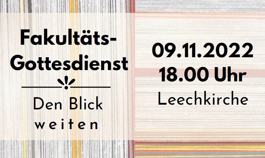 Herzliche Einladung zum Fakultätsgottesdienst am 9.11.2022 um 18:00 Uhr in der Leechkirche.