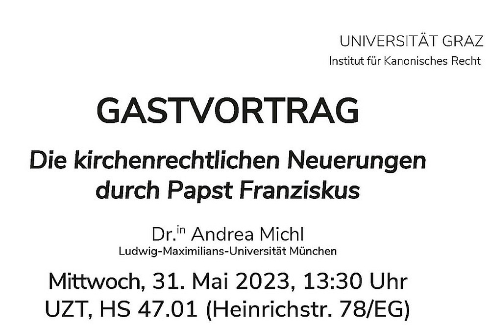 Wir laden herzlich zum Vortrag von Frau Dr.in iur. can. Michaela Michl ein!
