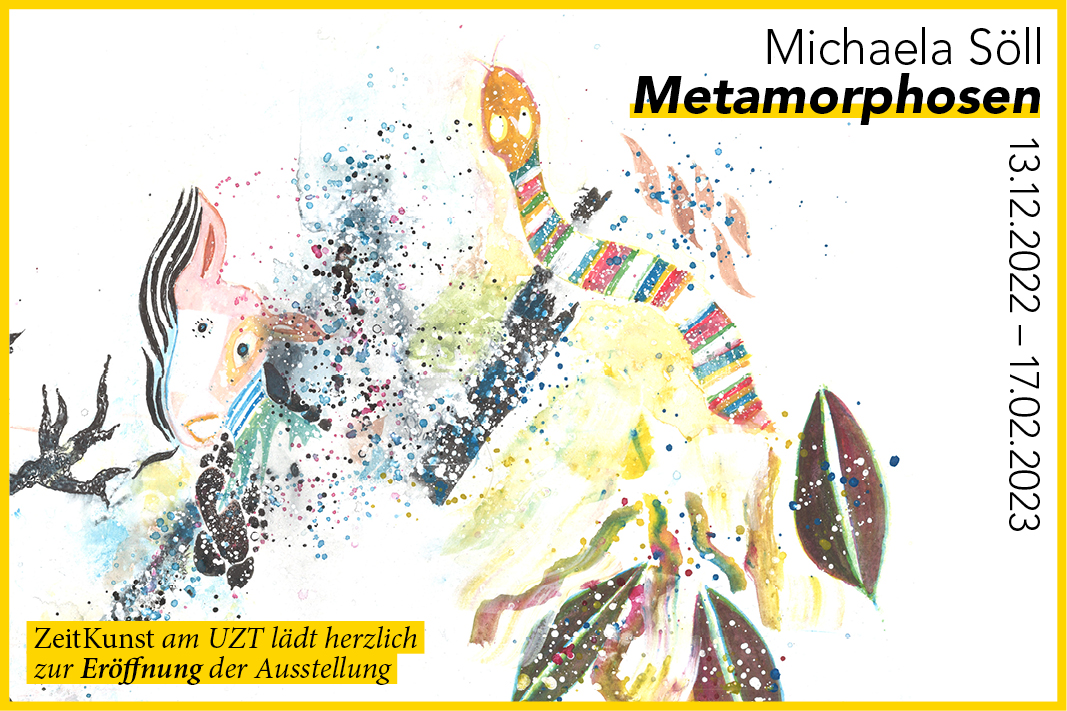 Michaela Sölls neue Malereien erzählen von vielfältigen Verwandlungen. Die kleinformatigen Arbeiten auf Papier (30 x 40 cm) führen in zumeist dichte Bildflächen aus animalischen und botanischen Formen und Fantasiewesen. Fließende Übergänge betonen die organische Einheit. Rudimente menschlicher Gesichter erwecken den mythischen Stoff längst vergangener Zeiten und rühren an die menschliche Hybris der Gegenwart.